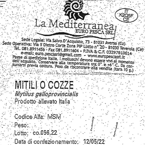 Le cozze richiamate sono state commercializzate dall’azienda Euro Pesca Srl (marchio di identificazione CE IT K2Q5F).