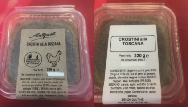 Aggiornamento dell’8 febbraio 2019: il Ministero della salute ha pubblicato il richiamo di altre confezioni di crostini alla toscana, venduti con i marchi Antipasti e Gastronomia Toscana, sempre per la possibile presenza di frammenti di plastica nel prodotto. Il richiamo del prodotto a marchio Gastronomia Toscana coinvolge i supermercati Carreofur.