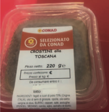 Aggiornamento dell’11 febbraio 2019: il ministero della Salute ha revocato il richiamo dei crostini alla toscana Selezionati da Conad, Antipasti e Gastronomia Toscana per la scadenza dei prodotti.