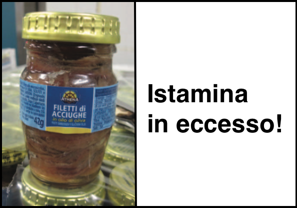 Eurospin raccomanda di non consumare il prodotto e di restituirlo presso il punto vendita d’acquisto. L’istamina si forma naturalmente in seguito alla degradazione dell’istidina, un aminoacido presente in alcuni pesci in grandi quantità. L’eccesso di istamina può causare sintomi mal di testa, arrossamenti, prurito, nausea e vomito.