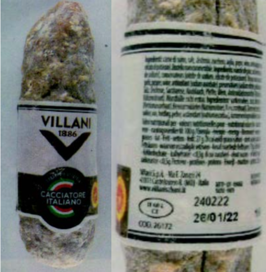 Il ministero ha pubblicato anche l’avviso di richiamo precauzionale ad opera del produttore di un lotto di salame cacciatore a marchio Villani per la “possibile presenza di Salmonella e Listeria m.”. Il prodotto interessato è venduto sfuso in formato da 170 grammi, con il numero di lotto 240222 – 26/01/22 e il Tmc 15/07/2022. Per i dettaglianti, il numero di lotto indicato sulle scatole è 1326212.