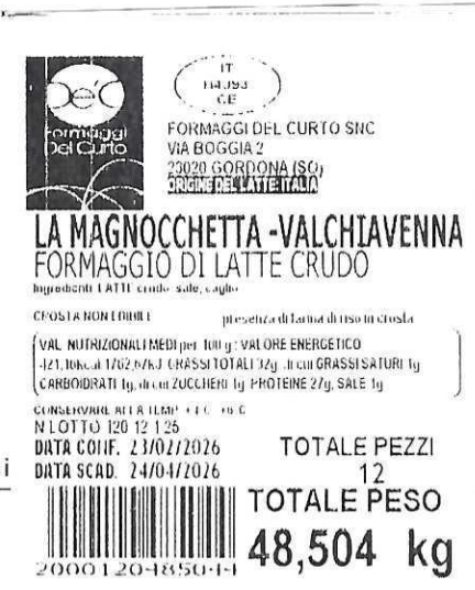 Il Ministero, come accennato, ha pubblicato il richiamo da parte del produttore di un lotto di formaggio a latte crudo La Magnocchetta – Valchiavenna a marchio Formaggi del Curto. Il motivo indicato sull’avviso di richiamo è la presenza di Escherichia coli produttori di tossina shiga (STEC). Il prodotto in questione è venduto in forme intere da 4 kg con il numero di lotto 120/12/1/25.