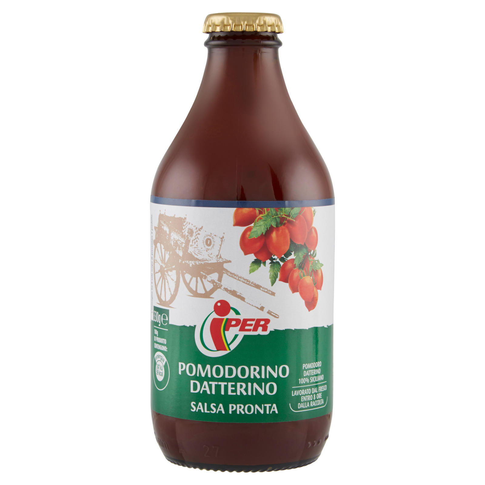 Il ministero della Salute ha pubblicato il richiamo di un lotto di salsa pronta di pomodrini datterini a marchio Iper per la possibile presenza di vetro. Il prodotto è venduto in bottiglie di vetro da 330 grammi con il numero di lotto D304/19 e i termini minimi di conservazione 31/10/2022 e 31/12/2022.