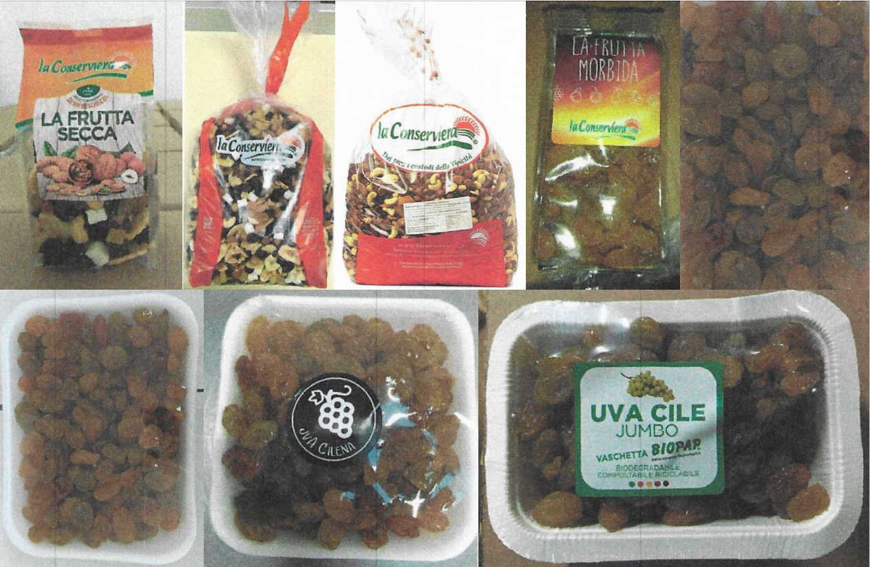 - Uva jumbo golden disidratata Mainardi Nicola, in vassoi da 200 grammi, con il numero di lotto 240725020;