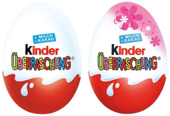 - Kinder Überrauschung (Sorpresa) Maxi e Kinder Überrauschung Maxi Mädchen (ragazza), in formato da 100 grammi, con tutti i numeri di lotto e termini minimi di conservazione (Tmc);
