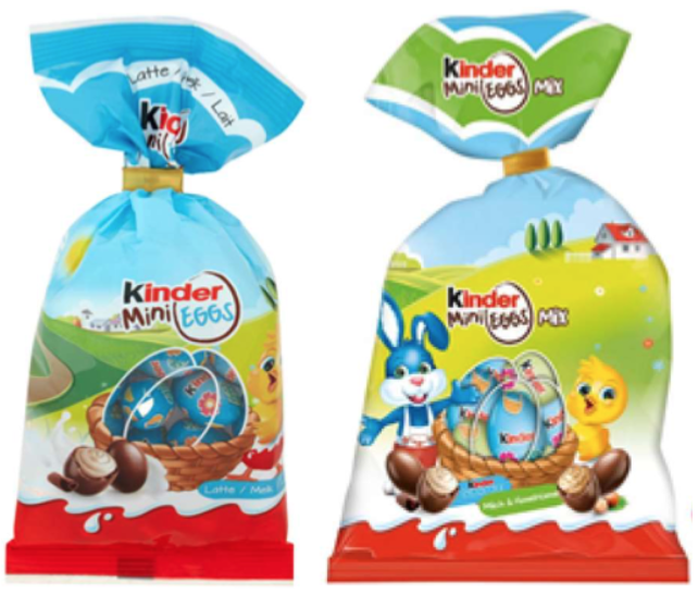 - Kinder Mini Eggs, in formato da 100 g e 182 g, e Kinder Mini Eggs Mix, in formato da 250 g, con tutti i numeri di lotto e Tmc;