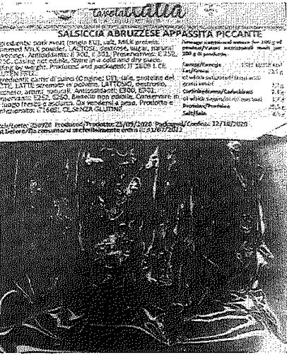 Il ministero della Salute ha diffuso il richiamo di un lotto di salsiccia abruzzese appassita piccante a marchio Tavola Italia, per la presenza di Salmonella Derby individuata durante le analisi del Servizio veterinario Isp. Alimenti dell’O.A. Asl di Frosinone. Il prodotto interessato è stato venduto in confezioni da circa 200 grammi con il numero di lotto 250920 e la scadenza 21/07/2021.