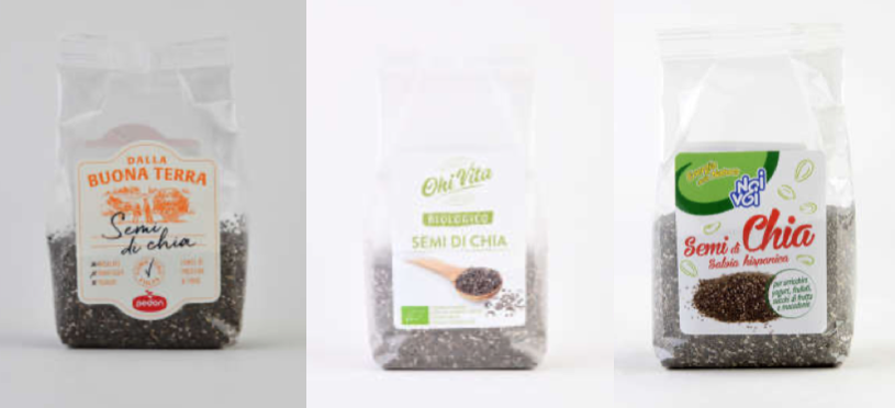 - Semi di chia Dalla Buona Terra Pedon, in confezioni da 250 grammi con i Tmc 24/04/2023, 07/04/2023, 26/02/2023 e 08/01/2023.