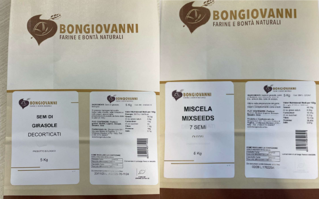 Il Ministero della Salute ha diffuso il richiamo da parte dell’operatore di un lotto ciascuno di semi di girasole decorticati bio e di mix di 7 semi a marchio Bongiovanni. La ragione indicata sull’avviso di richiamo è la presenza di Salmonella nei semi di girasole, contenuti anche nel mix. I prodotti in questione sono i seguenti: