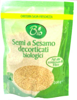 - Semi di sesamo decorticati biologici Bio, in confezione da 200 grammi, appartenenti ai lotti 2005640506 con termine minimo di conservazione (Tmc) 05/12/2021; 2206642906 con Tmc 29/12/2021; 2206640807 con Tmc 08/01/2022; 2206640809 con Tmc 08/03/2022; 0909642909 con Tmc 09/03/2022; 0909641510 con Tmc 14/04/2022; 0505640705 con Tmc o7/11/2021; 0505641905 con Tmc 19/11/2021; 2005642105 con Tmc 21/11/2021; 0106640806 con Tmc 08/12/2021; 0106641506 con Tmc 15/12/2021; 1404641504 con Tmc 15/10/2021; 1404642204 con Tmc 22/10/2021; 1404642404 con Tmc 24/10/2021