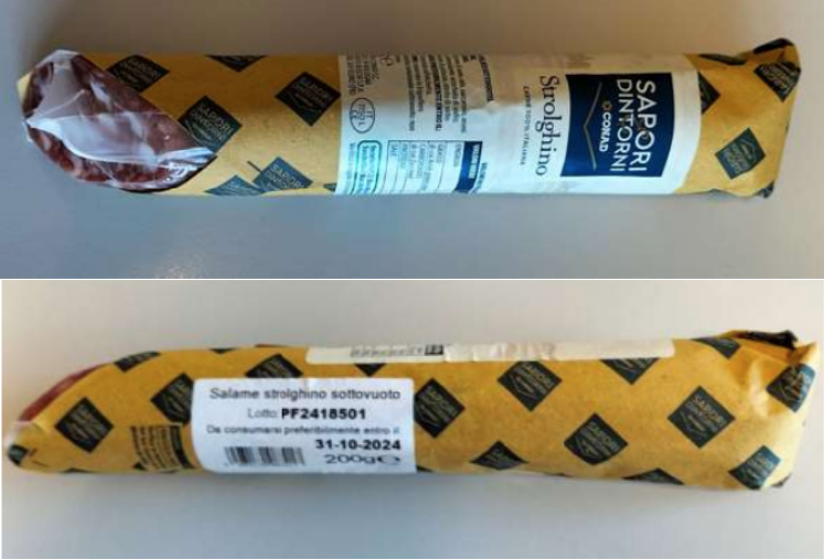 Il Ministero della Salute ha segnalato il richiamo da parte dell’operatore di un un lotto di salame strolghino pelato sottovuoto a marchio Sapori & Dintorni Conad. La ragione indicata nell’avviso di richiamo è la presenza di Listeria monocytogenes, in quantità superiore a 10 u.f.c./g (unità formanti colonia per grammo). Il prodotto in questione è venduto in pezzi da 200 grammi, con il numero di lotto PF2418501 e il termine minimo di conservazione (TMC) 31/10/2024.