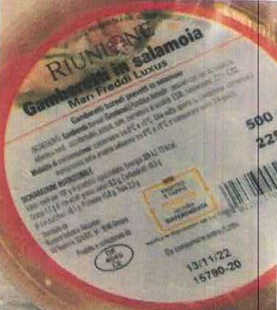 Il ministero della Salute e i supermercati Carrefour e Tigros hanno segnalato il richiamo precauzionale da parte del produttore di un lotto di bastoncini di surimi a pezzi in salamoia a marchio Riunione per un possibile errore di etichettatura: su alcune confezioni potrebbe essere presente l’etichetta dei gamberi in salamoia Mari Freddi Luxus (vedi foto sotto) al posto di quella del surimi, di conseguenza manca l’indicazione degli allergeni pesce, uovo, frumento e soia. Il prodotto in questione è venduto in barattoli dal peso netto di 500 grammi (peso sgocciolato 225 grammi), e sulle etichette errate sono indicati il numero di lotto 15790-20 e il termine minimo di conservazione 13/11/2022.