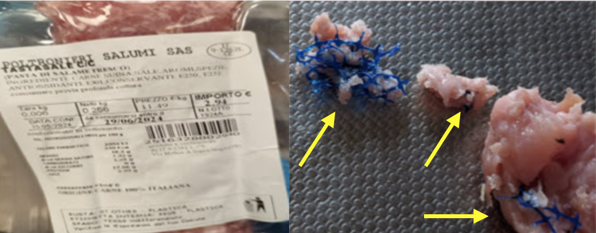 Il Ministero della Salute e i supermercati Migross hanno segnalato il richiamo da parte del produttore di un lotto di tastasale (pasta di salame fresco) prodotto da Poltronieri Salumi Sas. La ragione indicata sull’avviso di richiamo è la presenza nel prodotto di corpi estranei in plastica di colore blu (vedi foto sotto). Il tastasale in questione è venduto in confezioni da 250 grammi con il numero di lotto 1924A e le date di scadenza 20/06/2024, 22/06/2024, 23/06/2024, 24/06/2024, 27/06/2024, 28/04/2024, 29/06/2024, 30/06/2024 e 01/07/2024 (aggiornamento del 29/05/2024).