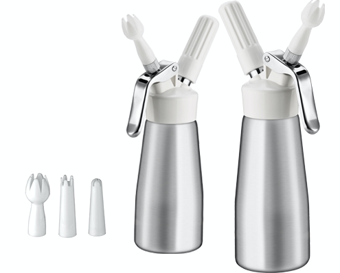 I sifoni sono molto diffusi per produrre spume leggere, come la panna montata, e sono costituiti da un contenitore in acciaio o alluminio, in cui vengono versati gli ingredienti, e una testa, in plastica o metallo, con il beccuccio erogatore e una valvola a cui si collega la cartuccia di gas. Tuttavia, se la testa è in plastica, potrebbe non essere in grado di resistere alla pressione generata dal gas ed esplodere.
