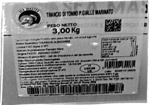 Il Ministero della Salute ha segnalato il richiamo da parte dell’operatore di un lotto di tranci di tonno pinna gialla marinato a marchio Sea Master. La ragione indicata sull’avviso di richiamo è la presenza di valori di istamina superiori ai limiti di legge, rilevati nel corso di analisi post vendita. Il prodotto in questione è venduto sfuso tramite banco pescheria (senza marchio) in confezioni sottovuoto dai 2 ai 3 kg, con il numero di lotto 20261018625 e la data di scadenza 27/03/2026. Anche i supermercati Carrefour hanno diffuso il provvedimento, specificando che il prodotto è distribuito preincartato in vaschette a peso variabile (aggiornamento del 27/03/2026).
