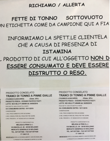 L’azienda precisa di aver già effettuato il richiamo presso i due distributori all’ingrosso del prodotto e di aver apposto due avvisi per i consumatori nel negozio al dettaglio presso il Mercato Generale di Bolzano. Si raccomanda di non consumare il tonno coinvolto dal richiamo, che può essere restituito al punto vendita.