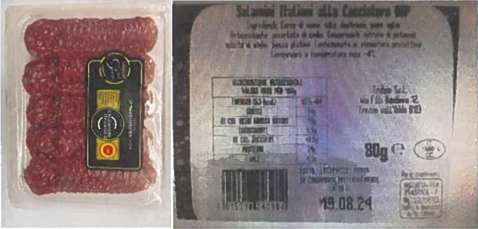 Il Ministero della Salute ha diffuso anche il richiamo precauzionale da parte del produttore di un lotto di salamini italiani alla cacciatora IGP affettati a marchio Viaggio nel Gusto. La ragione indicata è la possibile presenza di Listeria. Il prodotto interessato è venduto in vaschette da 80 grammi con il numero di lotto L023414223 e il TMC 19/08/2024.