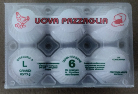 Il ministero della Salute ha segnalato il richiamo da parte del produttore di due lotti di uova fresche grandi L di categoria A a marchio Uova Pazzaglia per la positività a Salmonella enteriditis rilevata in seguito a un campionamento ufficiale di feci di galline ovaiole eseguito dalla ASUR Area Vasta 2. Il prodotto interessato è venduto in confezioni da 6 uova a guscio bianco con i numeri di lotto 431001 e data di scadenza 22/11/2022 e lotto 441001 con data di scadenza 28/11/2022.