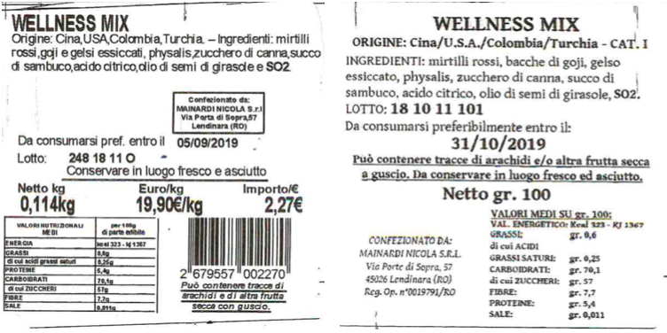 I mix di bacche sono stati prodotti da Mainardi Nicola Srl nello stabilimento di via Porte di Sopra 57, a Lendinara, in provincia di Rovigo.
