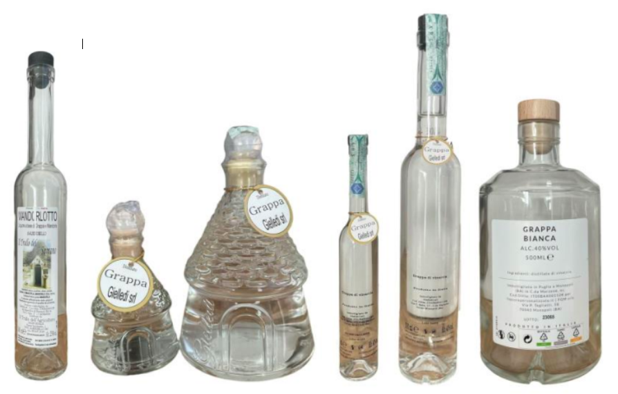 - Grappa Bianca Gielledi, in bottiglie da 40 ml, 100 ml, 200 ml e 500 ml, con il numero di lotto 23052;