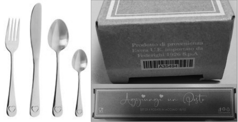 Il Ministero della Salute ha segnalato anche il richiamo da parte dell’operatore di un lotto del set di 4 posate in acciaio “Aggiungi un posto a tavola” a marchio Federighi 1926. La ragione indicata è il rilevamento di residui di cromo superiori ai limiti di legge. Il prodotto in questione appartiene al lotto 2023AH061.