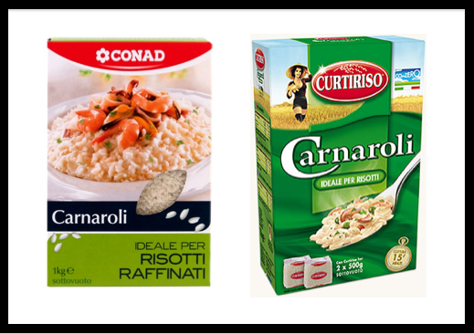 Confrontando le confezioni di riso, la differenza, ad eccezione del fatto che il riso Conad è confezionato in busta sottovuoto da 1 kg mentre Curtiriso è in formato 2×500 g, consiste solo nel prezzo: 2,95 euro per il primo rispetto a 3,98 euro per Curtiriso (circa il 35% in più). Una differenza che si può spiegare essenzialmente con i costi di marketing, pubblicità e delle attività promozionali nei supermercati, come l’acquisizione di spazi nei volantini promozionali, di cui è gravato il prodotto di marca.
