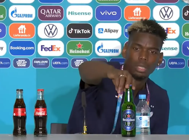 La vicenda di Cristiano Rolando che durante una conferenza stampa allontana due bottigliette di Coca-Cola (sponsor ufficiale del torneo di calcio Euro 2000), invitando a bere acqua di rubinetto, ha agitato il mondo dello sport. Anche il gesto di Pogba che nella conferenza stampa alla fine della partita Francia-Germania ha tolto una bottiglia di birra Heineken, altro sponsor della competizione, ha ricevuto un buon numero di reazioni. Il motivo del gesto di campione portoghese sembra essere legato alla cattiva abitudine di molte persone di bere bibite zuccherate, mentre Pogba ha scelto di togliere la birra in nome della sua sua fede religiosa, l’Islam, che vieta l’assunzione di alcol (forse non si era accorto che la bottiglia che aveva davanti era di birra analcolica). Il video del calciatore francese, così come accaduto con Ronaldo, sta facendo il giro del web.
