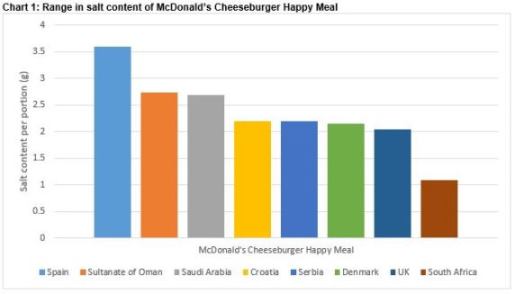 Fra l’altro ci sono differenze a livello nazionale. Un Cheeseburger Happy Meal venduto in Spagna con 3,6 g di sale per porzione ne contiene il triplo in Sud Africa. “Questo sondaggio – dicono da Wash – mostra chiaramente l’enorme variazione nei livelli di sale dello stesso pasto a seconda di dove viene venduto. Se è possibile rendere il piatto meno salato, perché le aziende non utilizzano questa ricetta in tutti i loro mercati? L’industria alimentare deve agire ora e affrontare gli scioccanti livelli di sale presente in alcuni pasti per bambini”.