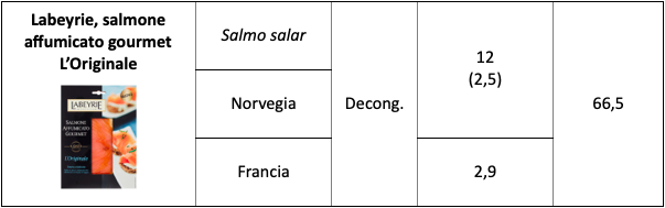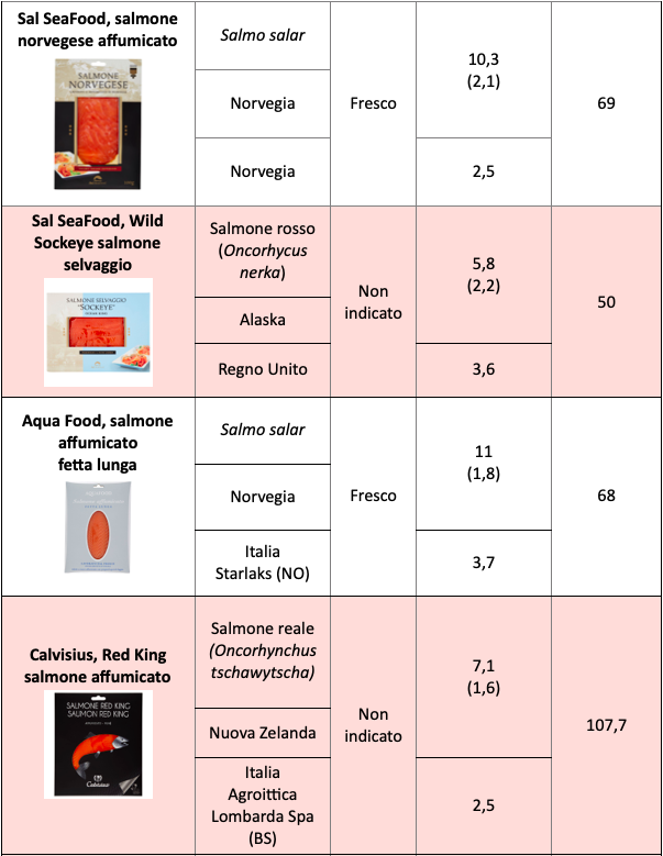 Abbiamo fatto un confronto fra alcune tipologie trovate nelle piattaforme di vendita online di Esselunga e Coop (vedi tabella). Leggendo le etichette vediamo che il salmone affumicato può essere decongelato oppure lavorato da fresco. “Per scongiurare la possibilità di un’infestazione da parte del parassita Anisakis – dice Tepedino – Dice Tepedino – (ne abbiamo parlato qui), il salmone selvaggio deve sempre essere congelato prima di essere affumicato a freddo. – La situazione è diversa per i prodotti dell’acquacoltura: se si può garantire l’assenza del parassita, come per esempio hanno dimostrato scientificamente i produttori norvegesi ottenendo dalla Commissione Europea la deroga all’abbattimento, possiamo trovare prodotto lavorato da fresco.”