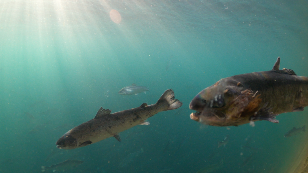 L’inchiesta è stata condotta in 22 aziende, con filmati raccolti in diverse realtà scozzesi tra settembre e novembre 2020. Dopo aver esaminato i filmati si è notato che una parte considerevole dei pesci vive in uno stato di scarso benessere. Sono stati rilevati danni da pidocchi, alghe che crescevano nelle ferite aperte dei pesci, danni alle branchie, danni alle pinne, teste bianche, abrasioni e lesioni e danni alla bocca. Ad alcuni pesci mancavano pezzi di carne. Compassion ha prontamente segnalato queste scoperte all’Animal and Plant Health Agency, ritenendo che le criticità si possono considerare una violazione dell’Animal Health and Welfare (Scotland) Act 2006. In due allevamenti è stata riscontrata la presenza di salmoni letargici che faticavano a respirare a causa dell’acqua sporca, pesci con deformità della spina dorsale, e molti con lesioni e pidocchi e inoltre salmoni morti venivano lasciati galleggiare nelle gabbie.