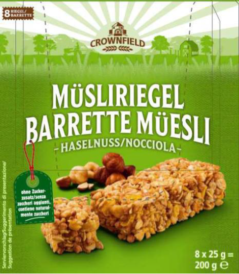 - Barrette muesli e cereali alla nocciola senza zuccheri aggiunti Crownfield