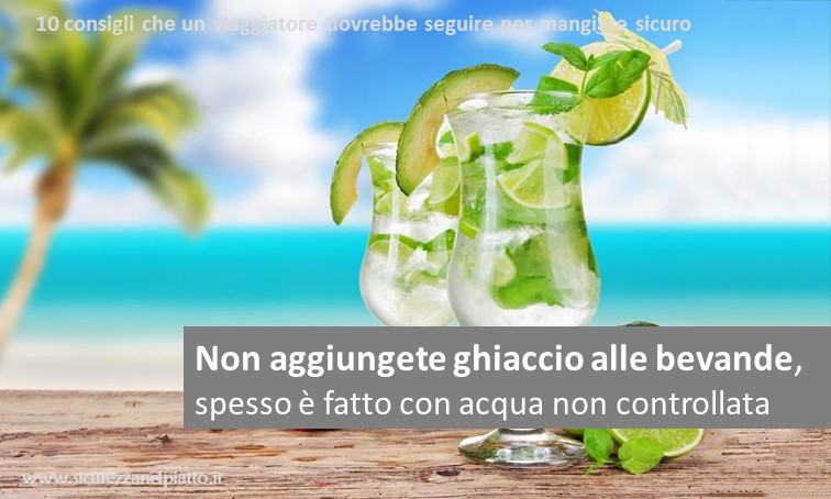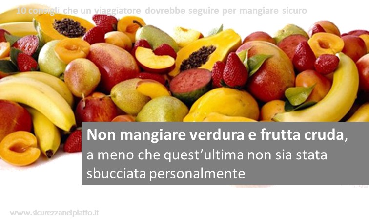 Dopo avere preso le dovute informazioni sul Paese di destinazione, i viaggiatori dovrebbero seguire il mantra “cuocilo, pelalo o scordatelo”, che in altre parole vuol dire consumare solo cibi confezionati o cotti completamente, sbucciare da sé la frutta prima di mangiarla ed evitare tutto il resto.