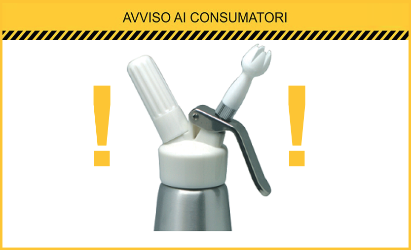 Per questo motivo la Confederazione generale degli importatori (CGI) e una ventina di fornitori e rivenditori membri della Federazione di Commercio e Distribuzione (FCD) hanno diffuso un avviso di allerta generale sollecitando i consumatori a non usare sifoni per panna costruiti con la testa in plastica.