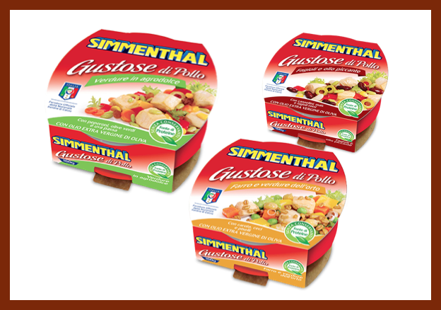 Le Gustose di Pollo Simmenthal abbinano verdure e carne, offrendo tre ricette: Farro e verdure dell’orto, Fagioli e olio piccante e Verdure in agrodolce.