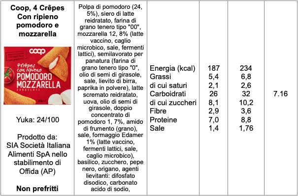 L’elenco degli ingredienti è sempre molto lungo, anche perché sono indicati i singoli ingredienti della pasta (farina, olio, uova e latte) e del ripieno che può essere formaggio oppure prosciutto cotto, pomodoro, funghi, spinaci o altro. Nell’elenco degli ingredienti presenti in etichetta troviamo anche quelli ‘industriali’, che di solito non si trovano nelle cucina di casa come: latte in polvere, siero di latte in polvere e glucosio, oltre ai nitriti presenti nelle versioni con prosciutto cotto. Ci può essere anche difosfato disodico, come agente lievitante, e trifosfati, come stabilizzanti, sostanze che, secondo alcune ricerche, potrebbero essere troppo abbondanti nella dieta di chi consuma molti alimenti industriali.