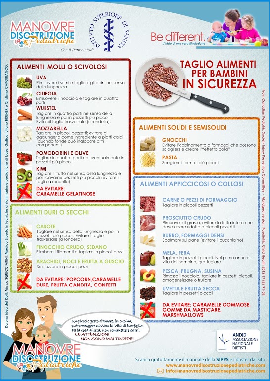 Per ulteriori approfondimenti è possibile consultare le Linee guida del Ministero della Salute sulla prevenzione del soffocamento da cibo e il sito Manovre disostruzione pediatriche.