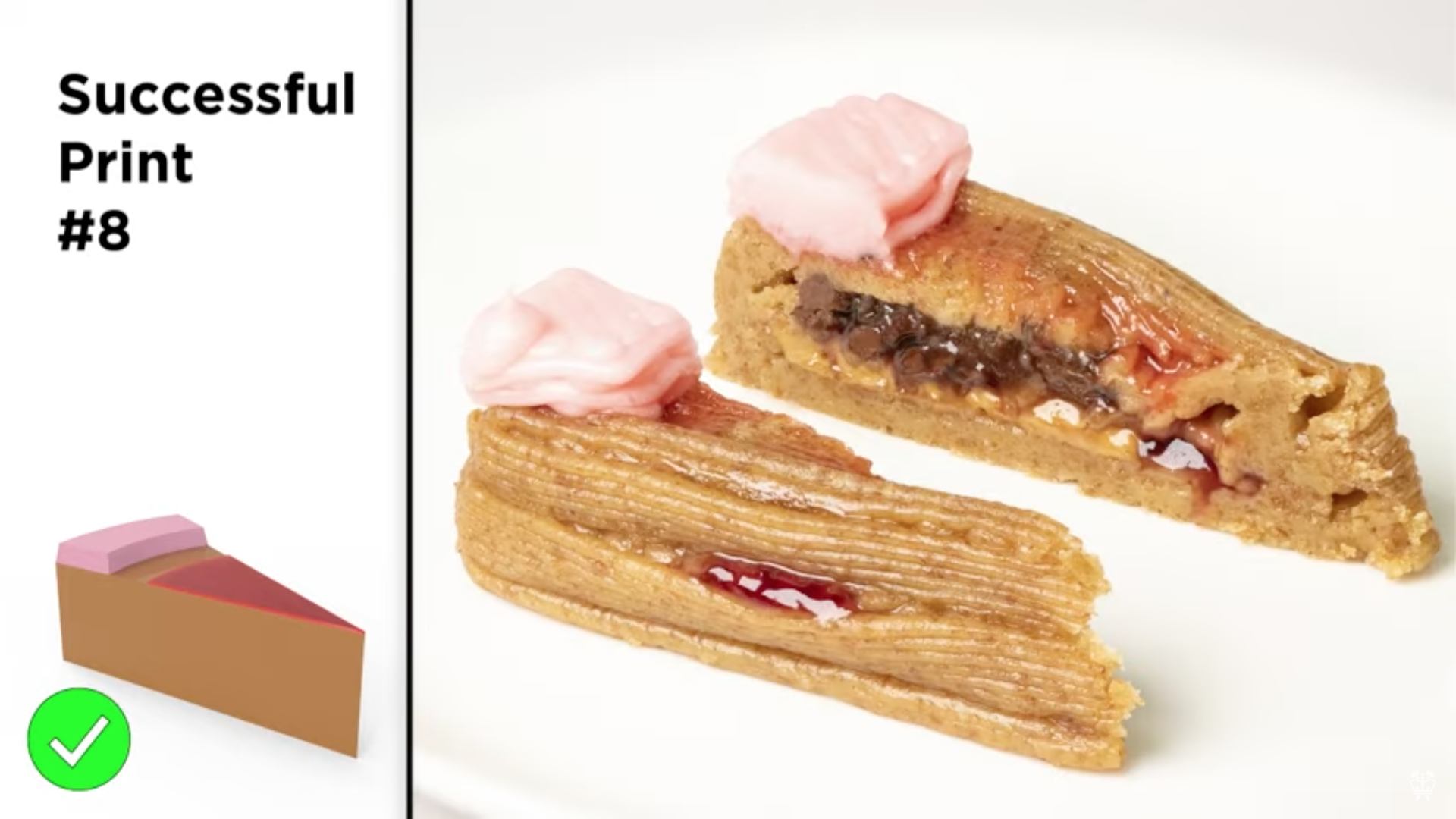 Al tema è dedicato un articolo pubblicato dai ricercatori dei laboratori di Laser Cooking e Digital Food della Columbia University di New York, sulla rivista del gruppo Nature Npj Science of Food, insieme a un video che illustra bene quanto sia stato difficile realizzare un dessert composto da più strati di diversa consistenza. Nel caso specifico, infatti, sono stati fatti numerosi tentativi per capire come assemblare uno strato solido di pasta di biscotti come base, e poi uno di burro d’arachidi, uno di marmellata di fragole, uno di Nutella, uno di purea di banane, uno liquido di succo di ciliegia e infine una glassa. Ma alla fine il risultato, dopo non pochi fallimenti, è stato raggiunto.