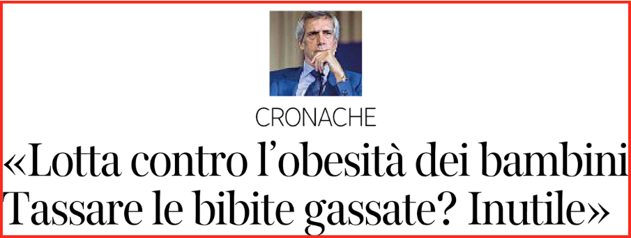 Poi c’è Luigi Scordamaglia, presidente di Federalimentare, da sempre contrario alla sugar tax e all’etichetta a semaforo, che considera fuorvianti i numeri sull’obesità diffusi dall’Istituto superiore di sanità e sostiene che “l’Italia ha il primato della salute e della longevità, non certo dell’obesità e che il numero di bambini obesi o sovrappeso in Italia è sotto la media dei Paesi Ocse“. Sarà forse vero ma si tratta comunque del 30% di bambini obesi o in sovrappeso.
