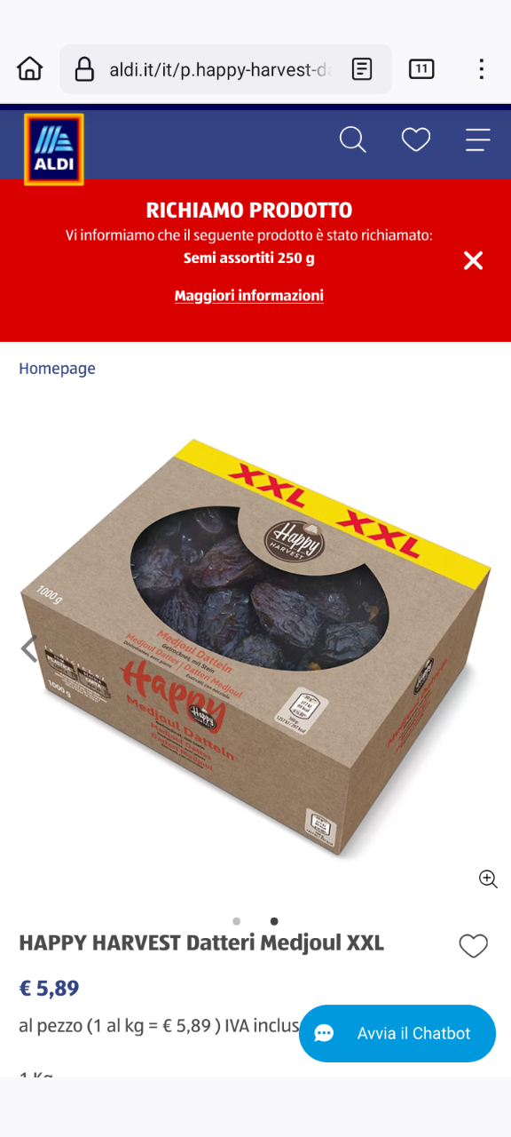In questo aggiornamento, i datteri non sono stati investiti dall’obbligatorietà di cui sopra, motivo per cui questa informazione non è riscontrabile sul Viva i Datteri Deglet Nour.