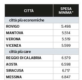 Analizzando la disposizione geografica dei punti vendita, l’area del Nord-est, con il Veneto in testa, si conferma la più conveniente. Le quattro città che quest’anno si aggiudicano le prime posizioni nella classifica della convenienza sono Rovigo, Mantova, Verona e Vicenza; mentre le più care risultano Messina, Siracusa, Aosta e Reggio Calabria. Il supermercato Conad Spesa Facile di Rovigo è quello risultato più conveniente dell’inchiesta a pari merito con Supermercati Martinelli di Mantova e l’ipermercato Galassia di San Giovanni Lupatoto di Verona (qui una famiglia spende circa 5.500 euro l’anno, ovvero 1.000 euro in meno rispetto alla media).