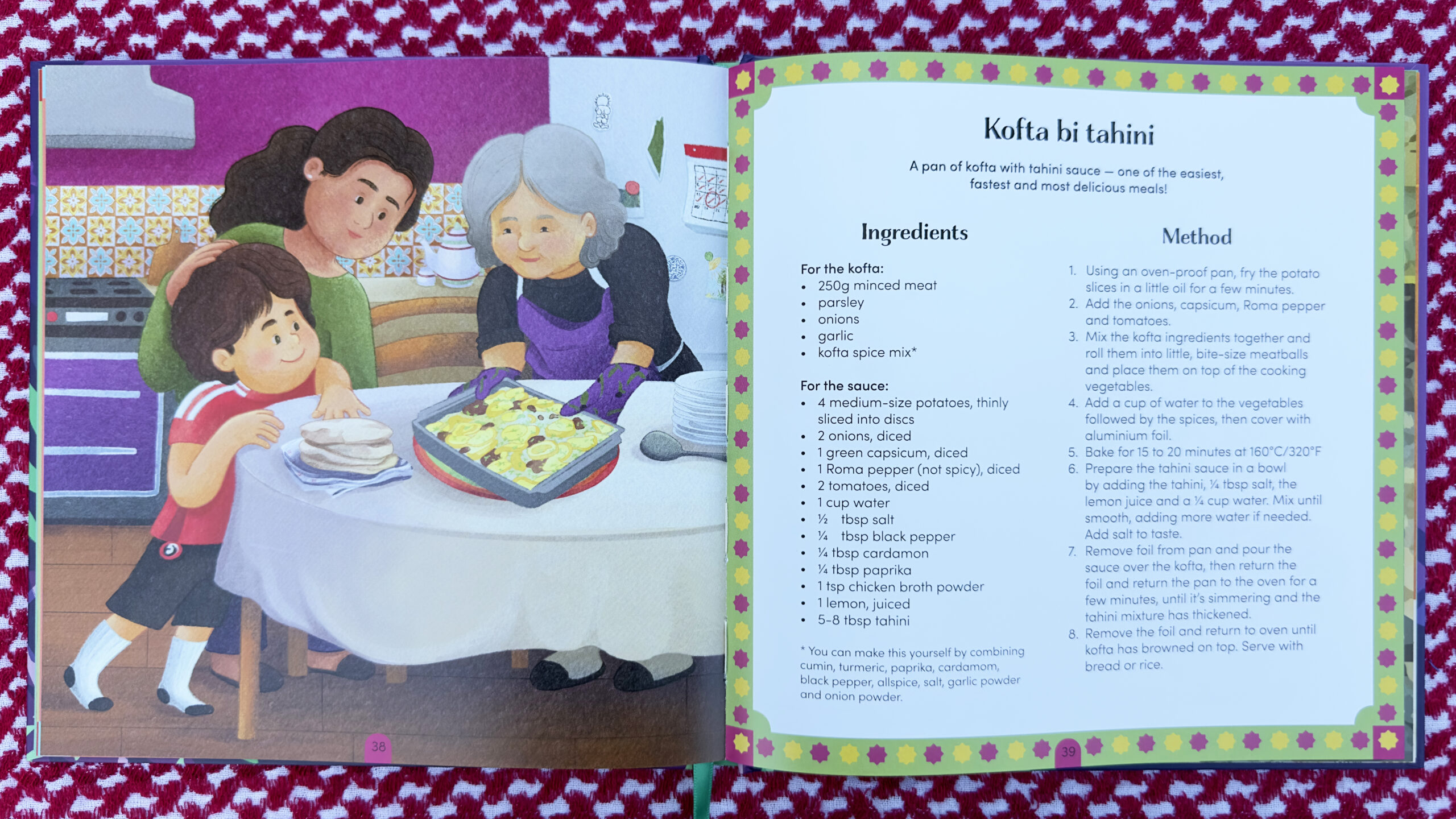 Per Zahed “le nostre ricette raccontano al mondo la nostra storia, le nostre cause, e che esistiamo”. Nel libro sono raccolte ricette rappresentative della tradizione palestinese come la maqluba (letteralmente rovesciata, capovolta), un piatto a base di riso, agnello e verdure nato dall’uso di donare cibo ai poveri dopo i banchetti; il maftool, ‘perle’ di farina di frumento integrale simili alla nostra fregola; la sumaqiyaa, uno stufato di carne di vitello e agnello con spezie; i dawali, involtini di foglie di vite; o la malfouf, foglie di verza farcite (vedi foto sopra).
