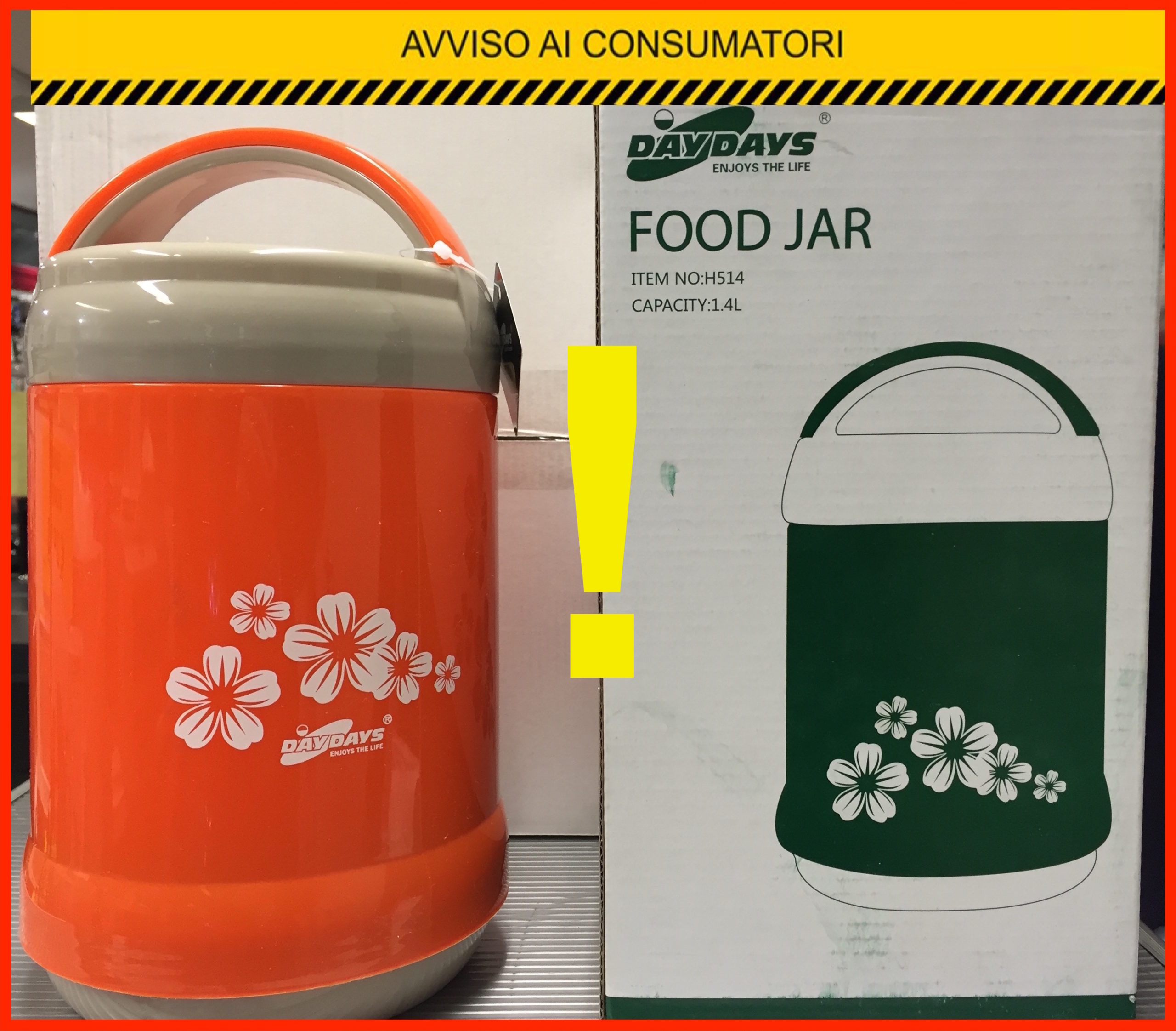 È scattata una nuova segnalazione di allerta da parte del Ministero della salute per la presenza sul mercato di thermos cinesi con amianto. Dopo i numerosi casi registrati nel 2014 e nel 2015 di cui si era già occupato Il Fatto Alimentare, un altro prodotto è stato scoperto dai Nas di Treviso nel punto vendita M.P. Market via Vecellio 71/1 di Belluno. Le forze dell’ordine hanno sequestrato una partita di thermos con una capacità di 1,4 litri, con esterno in plastica, e manico superiore a secchiello (vedi foto a lato) destinata a contenere alimenti. L’oggetto riporta la marca DayDays e codice a barre numero: 8301182614705 ed è stato importato dalla Cina dalla società INTE di Padova.