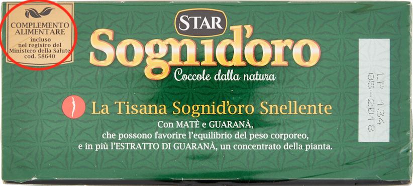 Mi pare una questione assai delicata. Quello che si intuisce dalla confezione è che è una tisana. La scritta ‘complemento alimentare’ è messa in disparte, e capire cosa vuole dire non è alla portata di tutti. A quello che penso, il concetto di ‘tisana’ il consumatore lo associa ad una bevanda innocua che si prende la sera prima di andare a nanna. Non certo a farmaci, o almeno esistono anche le tisane curative, ma forse il marchio ‘Sogni d’ oro’ viene identificato con the e camomilla. In questo caso invece effetti ‘farmaceutici’ immagino ci siano (snellente) sebbene con dosi blande delle piante indicate. Insomma, un pò di pasticcio mi pare