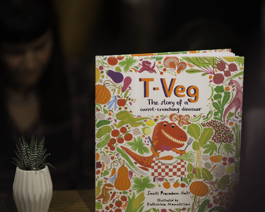 Un T-Rex vegetariano? Sembra impossibile, eppure è questa l’idea alla base del libro per bambini T-Veg, La storia di un dinosauro – edito da ElectaKids – che alla carne preferisce le torte di carote, gli spinaci, la frutta e altri ortaggi. Il libro dell’autrice indiana Smriti Prasadam-Halls e illustrato da Katherina Manomesso, ha disegni accattivanti e colorati che richiamano il mondo variopinto della frutta e della verdura. I testi sono semplici, chiari e raccontano in poche frasi una storia particolare e diversa.