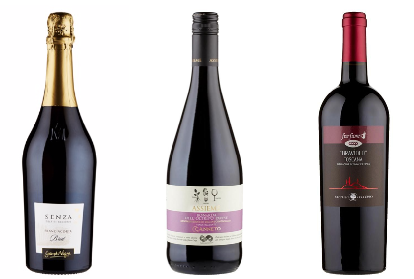 Carrefour, per esempio, propone i marchi “Tralcio Antico” e “Terre d’Italia”. Coop vende bottiglie di vino da tavola prodotti da cooperative con il marchio “Assieme” e 17 referenze di qualità medio-alta con il marchio “Fior Fiore”, imbottigliati da produttori importanti e in collaborazione con l’Associazione italiana dei sommelier. Iper da 13 anni propone il marchio “Grandi Vigne”, che comprende 80 tipologie di vino, prodotto da 35 cantine italiane, mentre Conad espone sugli scaffali 85 etichette diverse.